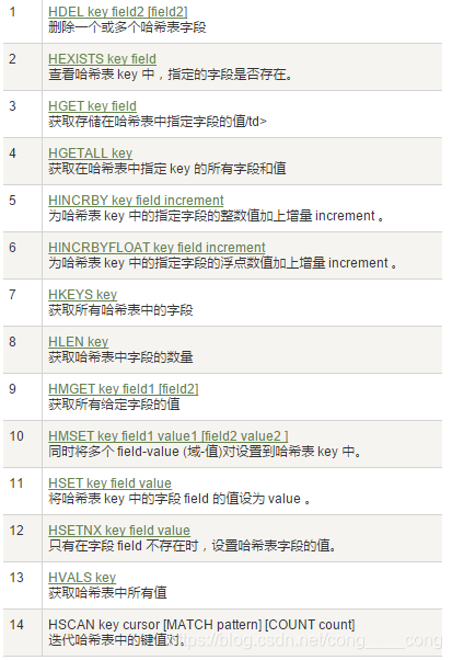hdel key k:删除键为k 的键值对 -