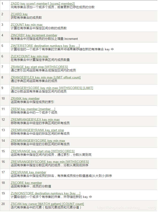 zrange key start end:输出start到end范围内的key和value -