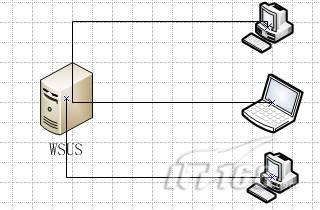 用过杀毒软件的用户一定知道,杀毒软件要定时更新。否则的话,杀毒软件装了就等于没装。对于Forefront来说也是如此。跟微软操作系统自动更新一样,Forefront更新也有两种方式。一是直接从互联网上进行更新。这种方式的缺陷就是更新速度慢,而且会占用大量的网络带宽,。二是在企业内部部署一台更新服务器。只有这台更新服务从互联网上下载更新包,其他客户端的话则从这台更新服务器下载所需要的更新。如下图所示。显然当企业客户端数量比较多的时候,这种更新模式更加的合理。