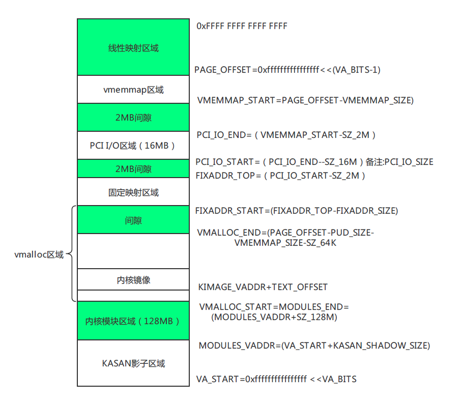 VA_START到MODULES_VADDR - 大小:内核虚拟地址空间长度的 1/8