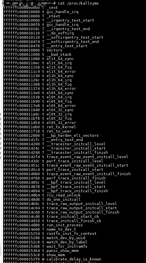 内容是当前内核符号表的快照。每一行表示一个符号的地址、类型和名称。