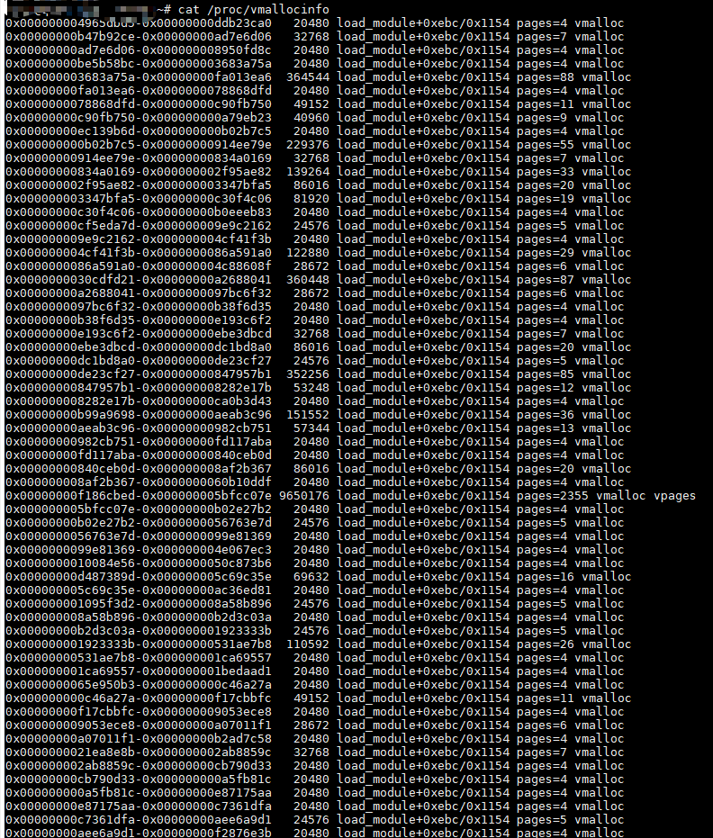 /proc/vmallocinfo 是 Linux 内核提供的一个调试接口,用于显示当前系统中通过 vmalloc() 分配的虚拟内存区域的详细信息。它主要用于分析内核空间的虚拟地址使用情况,尤其是 VMALLOC 区域的碎片、分配失败等问题。