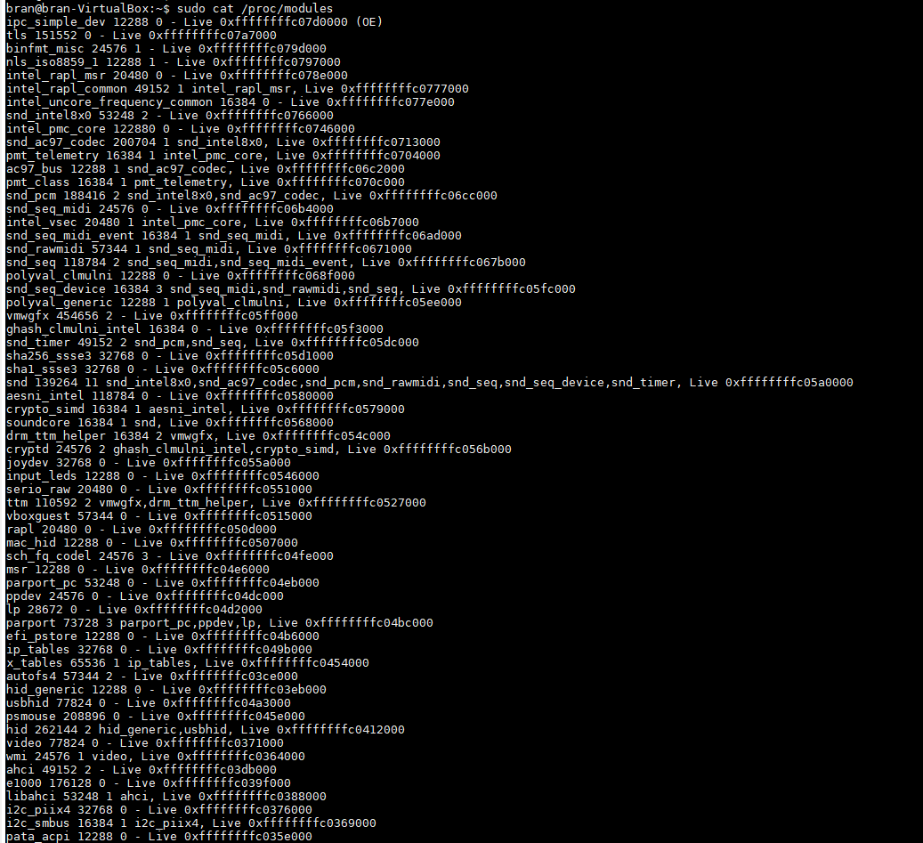 通过/proc/modules 查询当前系统中已加载的所有内核模块。