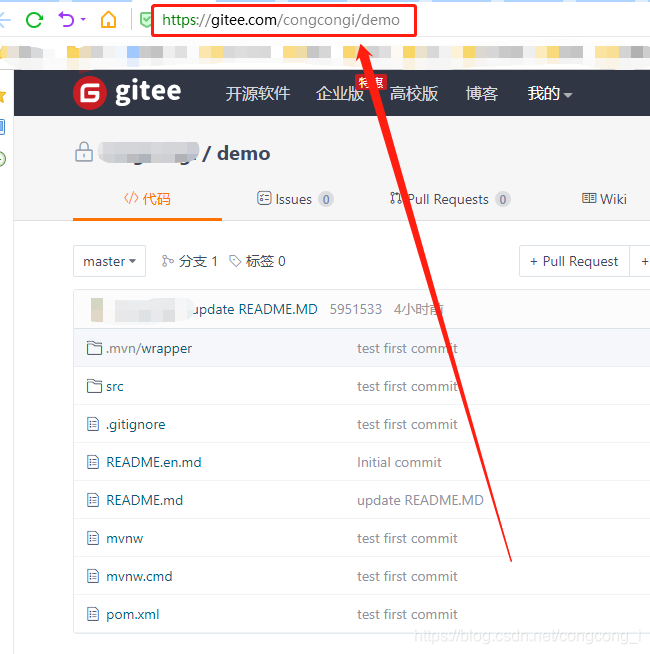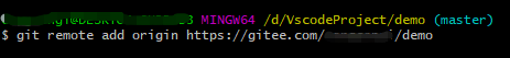 4.在Git命令窗口输入git remote add origin +云端仓库地址,云端仓库地址即在云端创建的仓库的地址,在云端进入仓库之后,复制网址链接就可以。这样就将本地想哭与远程仓库相关联了