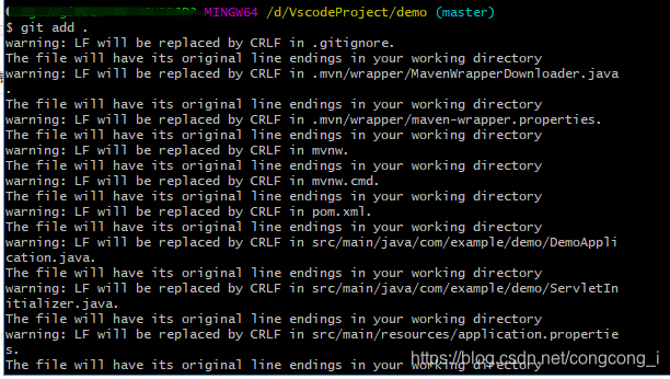 6.在Git窗口输入git add . ,这样就把本地所做的更改暂存到缓存区了