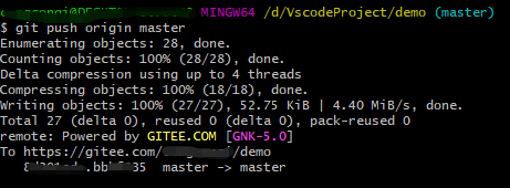8.最后,在Git窗口输入git push origin master,就将本地的更改推送到云端了,云端与本地同步了