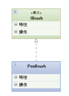 - 表示类实现接口的特征和行为