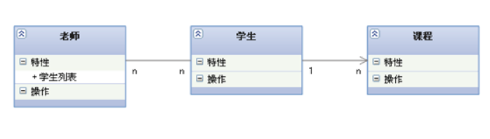 - 老师与学生是双向关联,学生与某课程间的关系为单向关联