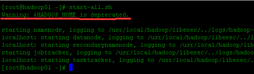 当启动Hadoop时出现Warning: $HADOOP_HOME is deprecated.警告。如下图