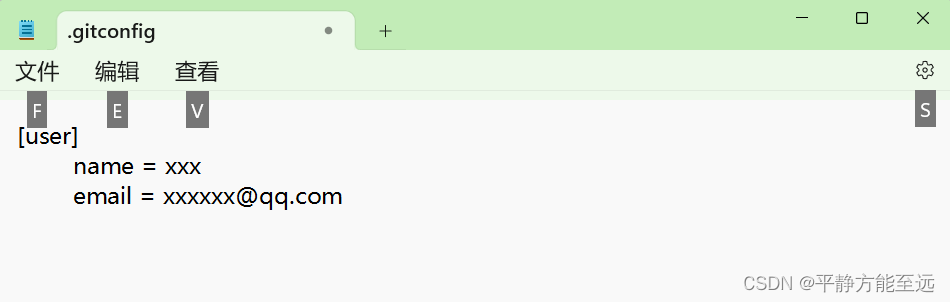 我们可以使用记事本打开此文件,从而查看自己曾经对 Git做了哪些全局性的配置。