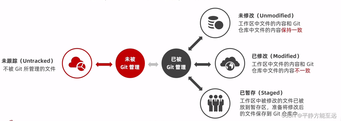 工作区中的每一个文件可能有 4 种状态,这四种状态共分为两大类,如下图所示: