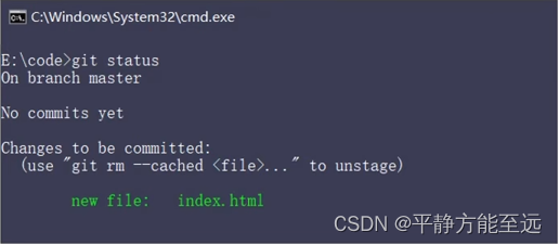 此时我们再运行 git status 命令,会看到 index.html文件在 Changes to be committed 这行的下面,说明已被跟踪,并处于暂存状态: