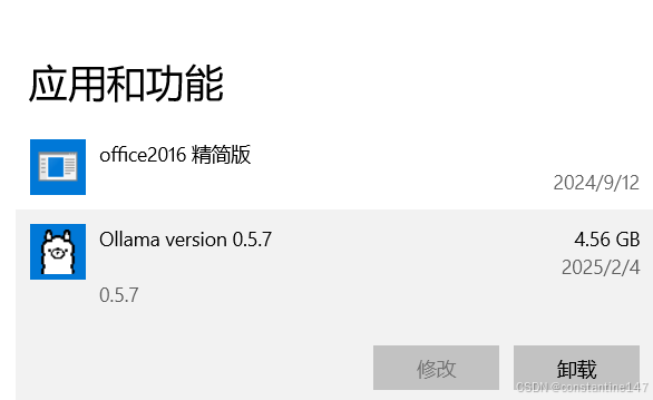 即可移除大模型。删除完后,再输入Ollama list查看下大模型资源包确认下是否删除,如果没有了大模型资源包的名称了,就确认是完全删除了,到这里大模型资源包就完全删除了,然后Ollama可以在Windows系统程序那里找到正常卸载。