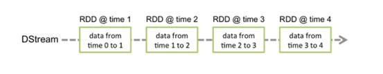 对于Spark Core其核心部分就是RDD,对于Spark Streaming来说,它的核心是DStream(Discretized Stream),其作为Spark Streaming的基础抽象,它代表持续性的数据流。这些数据流既可以通过外部输入源赖获取,也可以通过现有的Dstream的transformation操作来获得。在内部实现上,DStream类似于RDD,其是由一组时间序列上连续的RDD来表示。每个RDD都包含了自己特定时间间隔内的数据流。如下图所示: