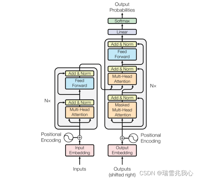 - Output Embedding 与输入 Input Embedding 的处理方法步骤一样,输入 Input Embedding 接收的是 source 数据,输出 Output Embedding 接收的是 target 数据(例如:输入 Input Embedding 接收 "I Love You" 分词后的词向量 Word Embedding;输出 Output Embedding 接收 “我爱你” 分词后的词向量 Word Embedding)