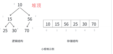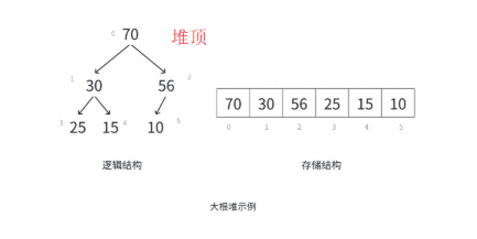 以二叉树的顺序存储方式来存储元素,堆是一种特殊的二叉树,满足父节点存储数据要大于儿子结点存储数据的一种数据结构,堆分为两种大堆和小堆,大堆是大于儿子结点数据,小堆则是要小于儿子结点数据。如下图所示,图一为小堆,图二为大堆。