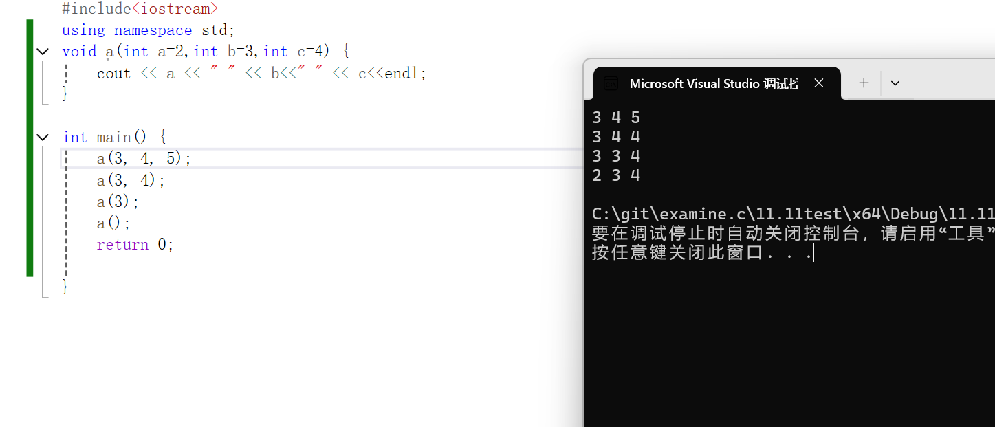 1.声明或定义函数时为函数的参数制定一个缺省值。在调用该函数时,如果没有指定实参则采用该形参的缺省值,否则使用指定的实参,缺省值分为全缺省与半缺省。
