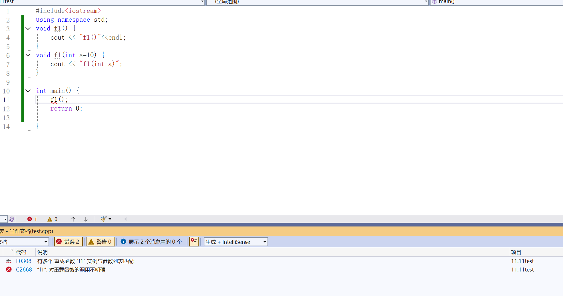 当我们调用f1不传参时,编译器也不知道该调用哪个函数,所以产生歧义