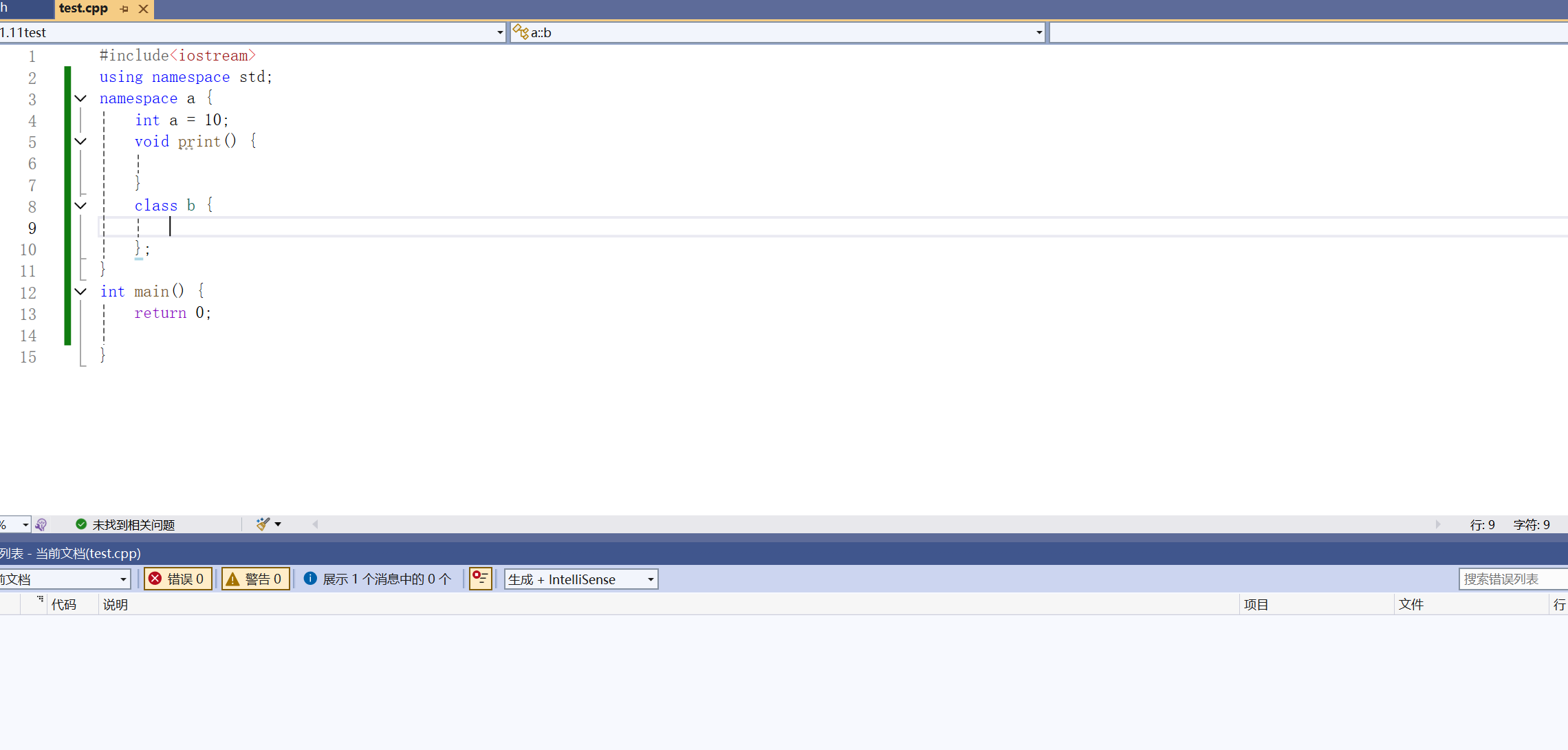 定义命名空间,需要使用namespace这个关键字,后面跟空间名字,而后使用{},在括号中可以有函数,变量和类名。