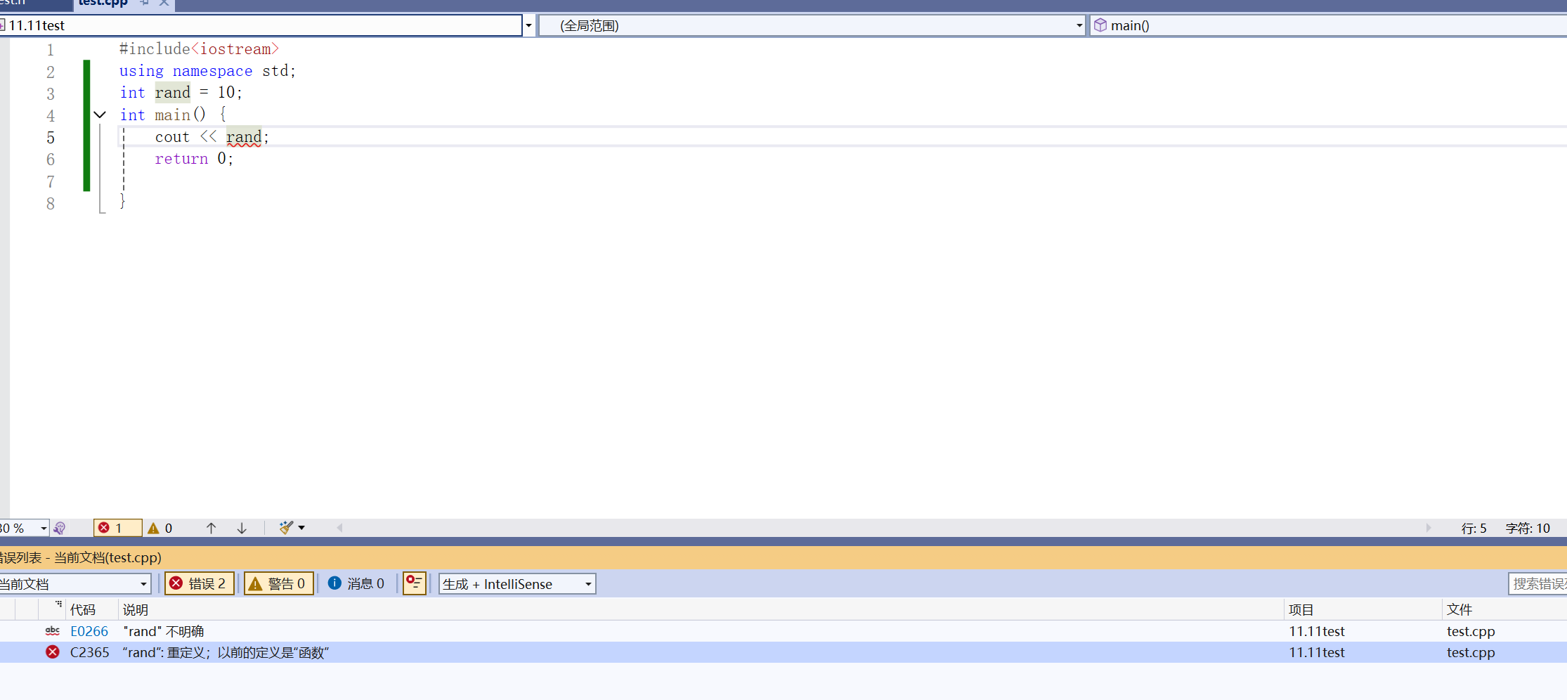 因为c++中这个rand是函数所以不能被赋值,为了解决这个问题,c++推出了命名空间这个概念