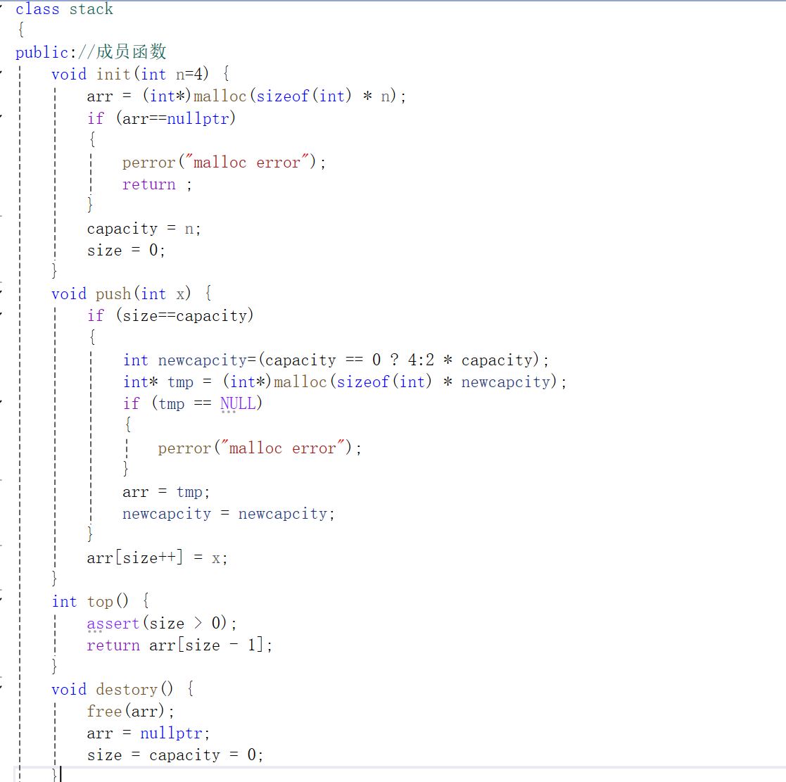 (1).class为定义类的关键字,其中stack为类的名字(当然类的名字可以自己随意取),{}中为类的主体。括号中有类的成员分别由类中的变量和函数组成。其中变量是指类的属性或成员,类中的函数称为类的方法或成员函数。