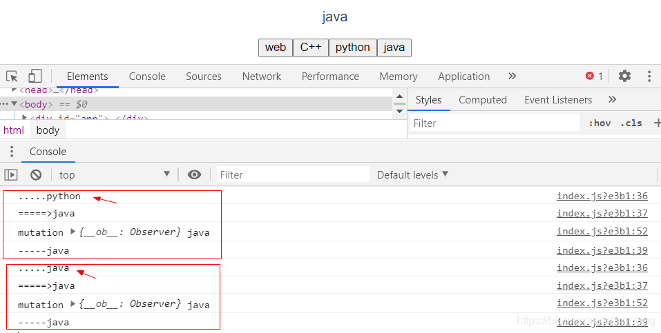 注意commit 前后对 state.job 的影响:点python,点java,再点java