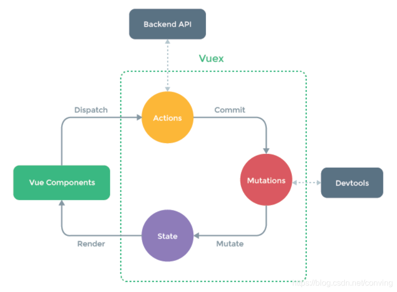 - Action 提交的是 mutation,而不是直接变更状态。