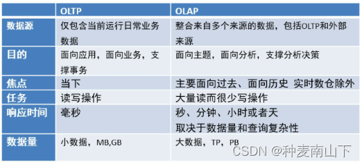 - OLTP是传统的关系型数据库的主要应用,主要是基本的、日常的事务处理,例如银行交易。 【也可以做分析使用,但是没必要】