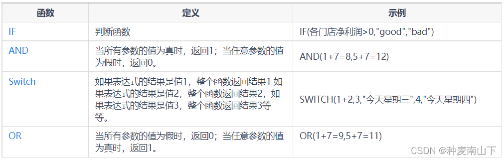 FineBI中提供的逻辑函数只有以下4种: