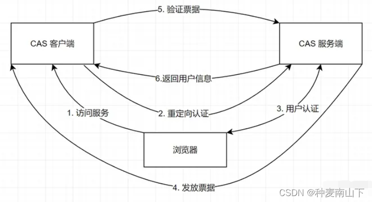 在请求阶段CAS Client 会分析该请求的 Http 请求中是否包含 Service Ticket,如果没有,则说明当前用户尚未登录,于是将请求重定向到指定好的 CAS Server 登录地址,并传递 Service (也就是要访问的目的资源地址),以便登录成功过后转回该地址。用户在第 3 步中输入认证信息,如果登录成功,CAS Server 随机产生一个相当长度、唯一、不可伪造的 Service Ticket,并缓存以待将来验证,之后系统自动重定向到 Service 所在地址,并为客户端浏览器设置一个 Ticket Granted Cookie(TGC),CAS Client 在拿到 Service 和新产生的 Ticket 过后,在之后的请求中与 CAS Server 进行身份核实,以确保 Service Ticket 的合法性。