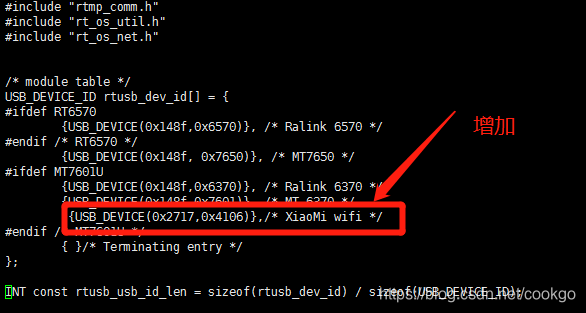 修改:/root/DPO_MT7601U_LinuxSTA_3.0.0.4_20130913/common/rtusb_dev_id.c 如图:不修改这个系统无法识别
