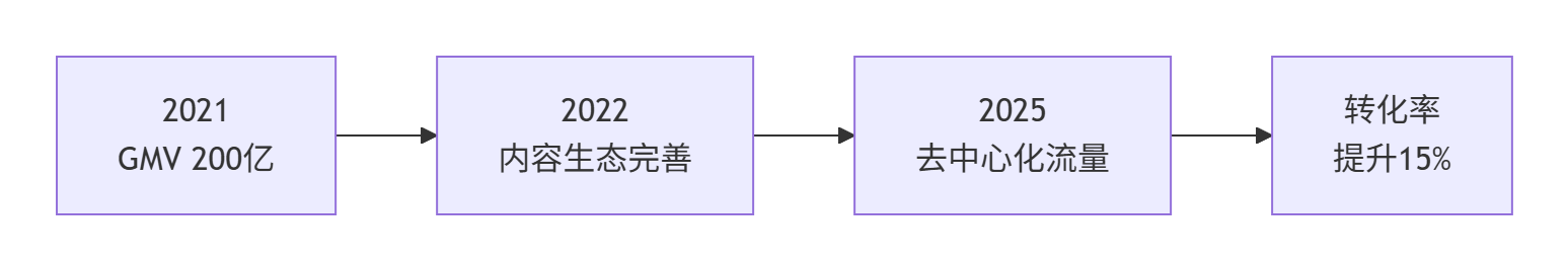2020-2022 年:直播电商爆发式增长,成为最重要的流量获取方式。据统计,2021 年淘宝直播的 GMV 超过 3000 亿元,占淘宝总 GMV 的近 10%。同时,私域流量运营成为新趋势,平台和商家都开始注重用户的长期价值。