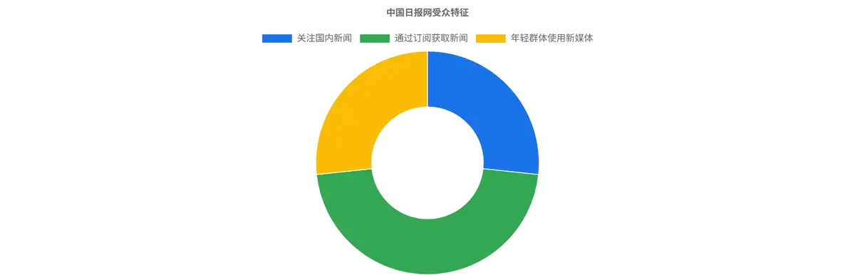 中国日报网则具有鲜明的国际化传播特色。作为面向海外受众的权威媒体,中国日报网适合双语报道、国际传播,助力内容出海。其受众中约 40% 更关注国内新闻,特别是有关社会、科技和教育的报道;约 70% 的受众通过订阅获取新闻,其中 40% 选择纸质版,30% 选择电子版。值得注意的是,20-30 岁的年轻群体使用新媒体平台的比例最高,为 40%。