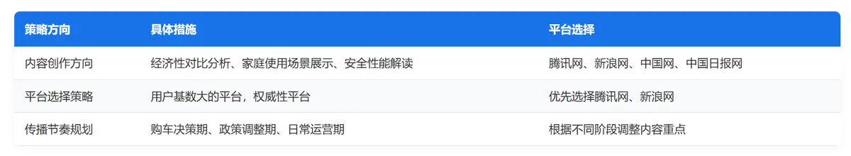 新能源汽车市场正处于从 “增量竞争” 向 “存量竞争” 转变的关键时期,精准的人群洞察、差异化的内容策略、高效的平台协同将成为企业制胜的关键。建议企业充分利用主流门户媒体平台的传播优势,围绕三大核心消费人群的需求特征,构建以用户为中心、以数据为驱动、以内容为载体的新型营销体系,在激烈的市场竞争中赢得主动权。