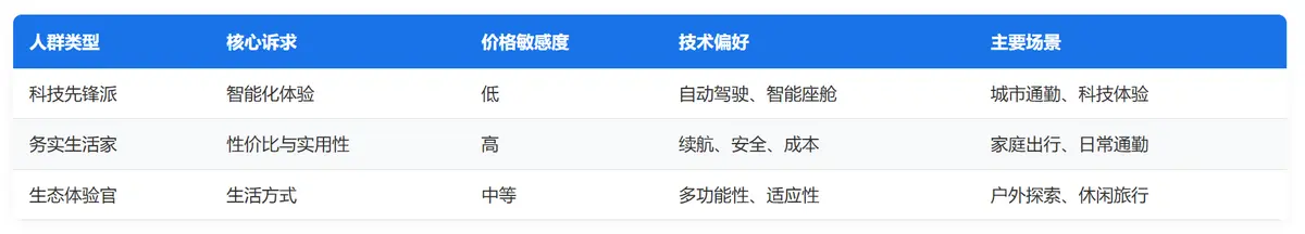 务实生活家是新能源汽车市场的中坚力量,这一群体以家庭为核心,注重实用性和性价比。根据中国经营报联合新浪发布的调研数据,26-45 岁中青年群体以 65.1% 的占比成为绝对主力,这一群体成长于互联网时代,对新技术接受度高,同时兼具家庭责任与理性消费思维。