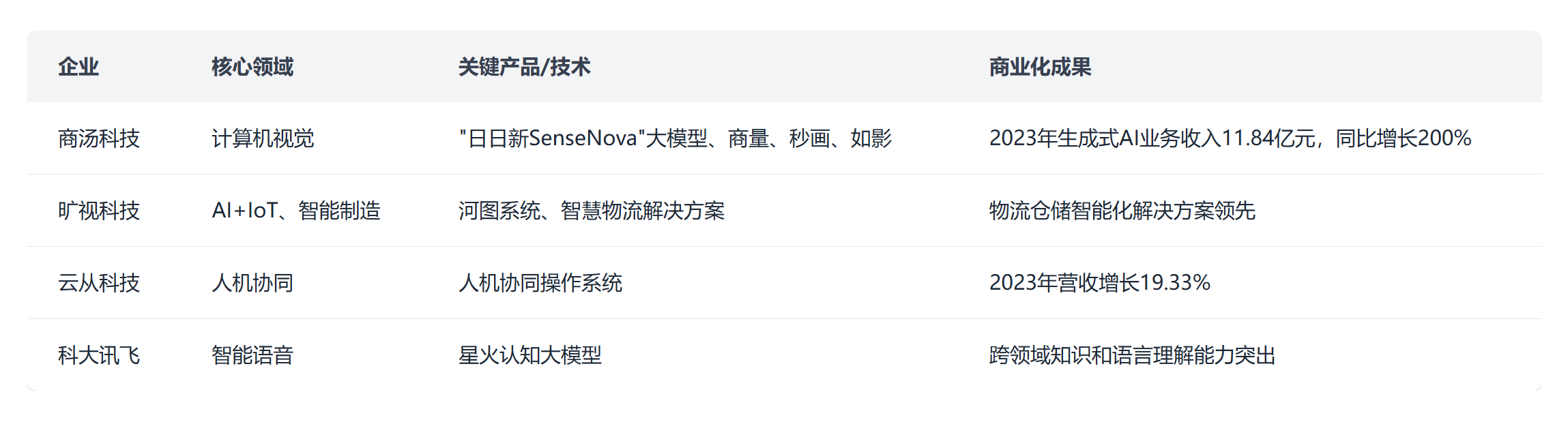 垂直领域 AI 企业在各自细分赛道展现出技术深耕和场景创新的双重优势。