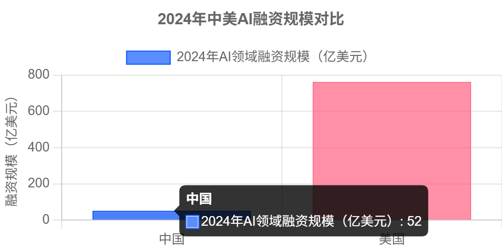 尽管市场规模快速增长,但中国在 AI 投融资方面与美国存在巨大差距: