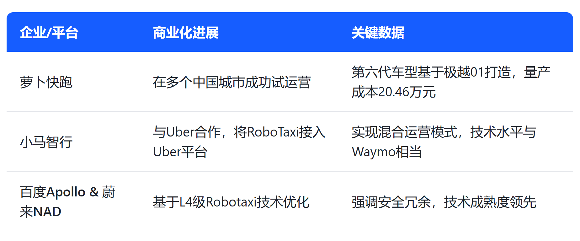- 百度 Apollo 和蔚来 NAD 均基于 L4 级 Robotaxi 技术优化,强调安全冗余
