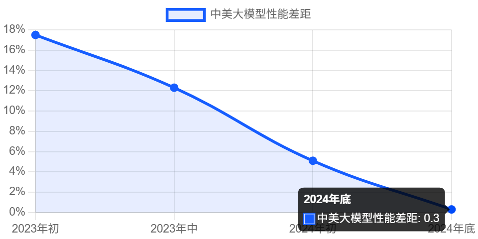 - 大模型性能差距:从 2023 年的 17.5% 缩小到 2024 年底的 0.3%