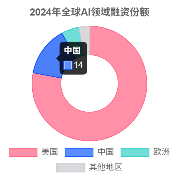 - 2024 年美国 AI 领域融资份额 78%,中国仅 14%,份额差从 2023 年的 2.5 倍扩大至 5.7 倍