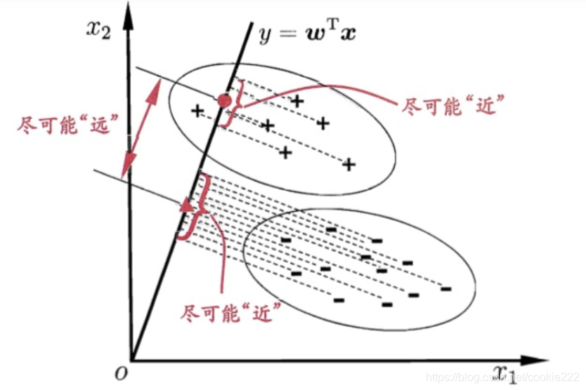 思想:降维后的样本投影点,类内方差小,类间方差大。