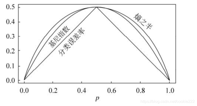 与决策树回归大致是一样的,只是在回归问题中,选择分割点的标准是均方误差,但是在分类问题中,由于因变量是类别变量而不是连续变量,因此用均方误差显然不合适。那问题是用什么作为选择分割点的标准呢?