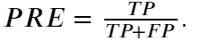 - 精度:预测为正且分类正确的样本占预测值为正的比例,即: