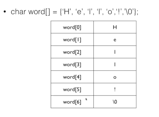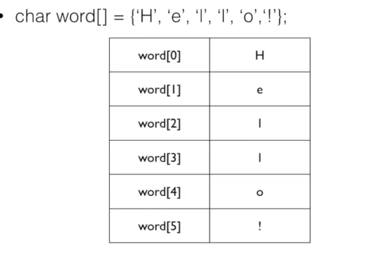 char word[]="Hello";//有一个数组word,它的内容是Hello