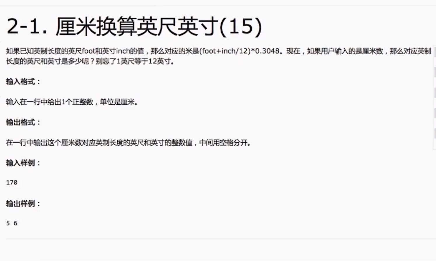 ((foot + inch /12)* 0.3048));#这里的12不用改为12.0,因为前面是double,但是是%lf