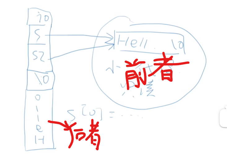 两者区别就是,前者是指针指向了"Hello World",后者是将"Hello World"放在自己那里