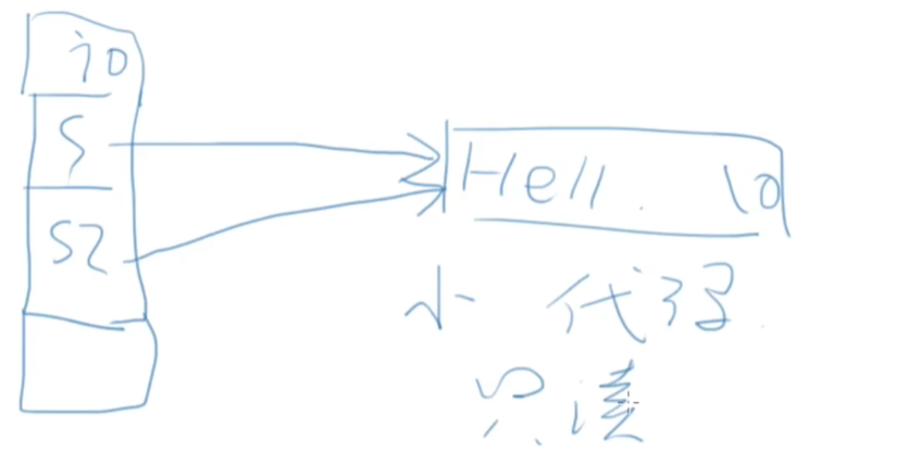 //输出发现,s,s2,被赋予了相同的值,也就是他们所指的位置一致都是0xe1f82