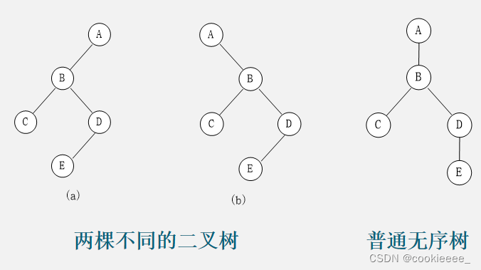 ②二叉树的左右子树不一定可任意交换;(有序树不可以,一般的树可以