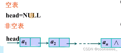 2.链式存储结构:借助指示元素存储地址的指针来表示数据元素之间的逻辑关系,不要求逻辑上的相邻节点再物理位置上相邻,结点之间的关系由附加的指针域来表示