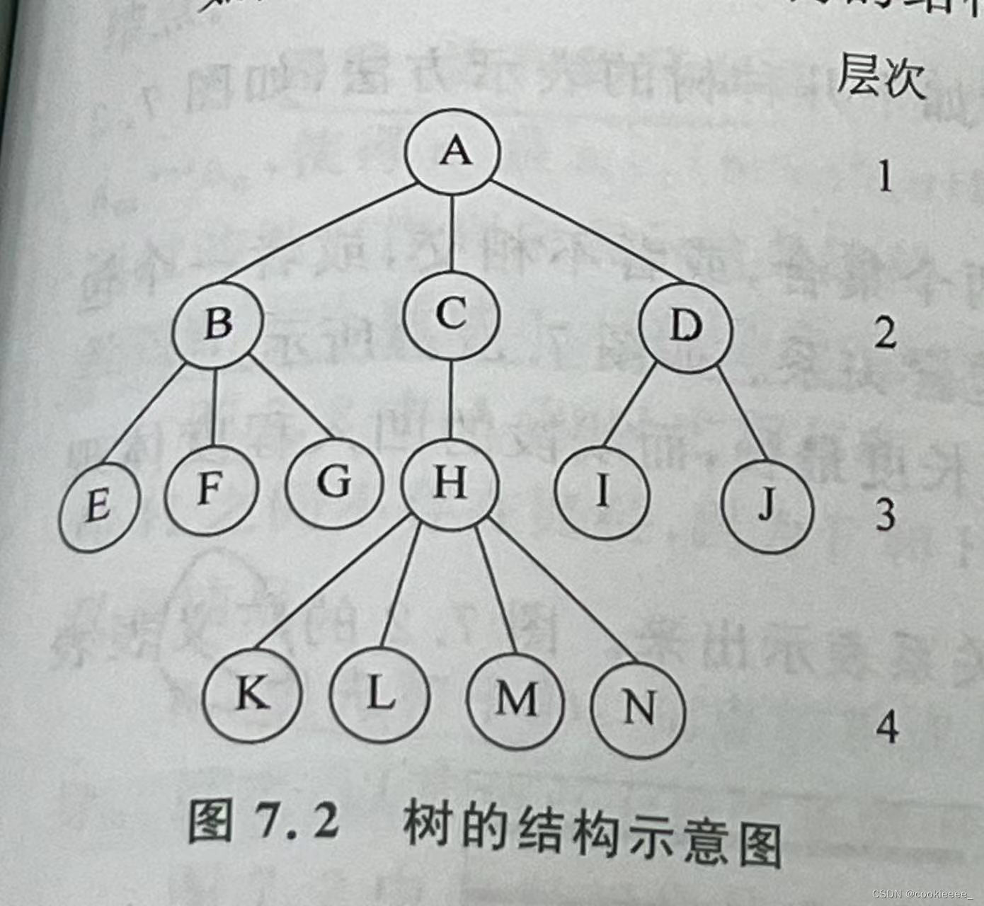 3.树形结构:数据元素之间存在一对多的关系,除了起始结点以外,各个结点都有唯一的直接前驱结点,所有结点都有0个到多个直接后继结点,树形结构能反映出结点之间的层次关系,有向的箭头体现了结点之间的从属关系